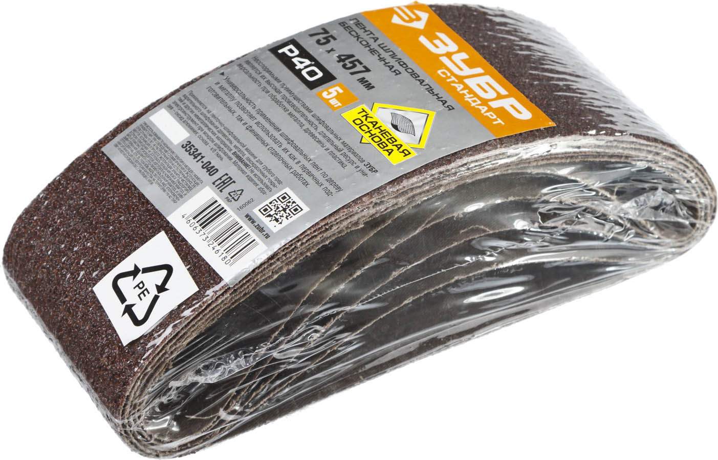 ЗУБР 75х457 мм, P40, лента шлифовальная СТАНДАРТ, для ЛШМ, 5 шт.