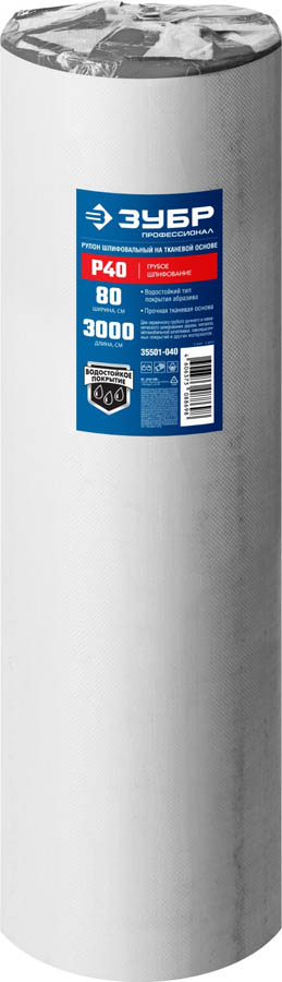 Р40, 800 мм рулон шлифовальный, на тканевой основе, водостойкий, 30 м, ЗУБР Профессионал
