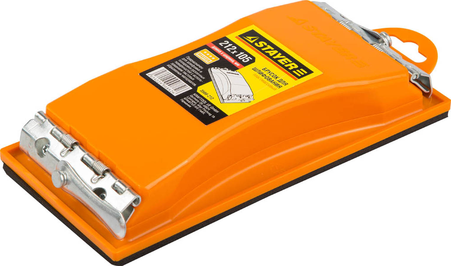 Брусок для шлифования STAYER 3566-212, предназначен для полировки и шлифовки различных поверхностей. Эргономичный дизайн. Металлический зажим для закрепления абразивной сетки или бумаги. STAYER - качество, проверенное временем.
