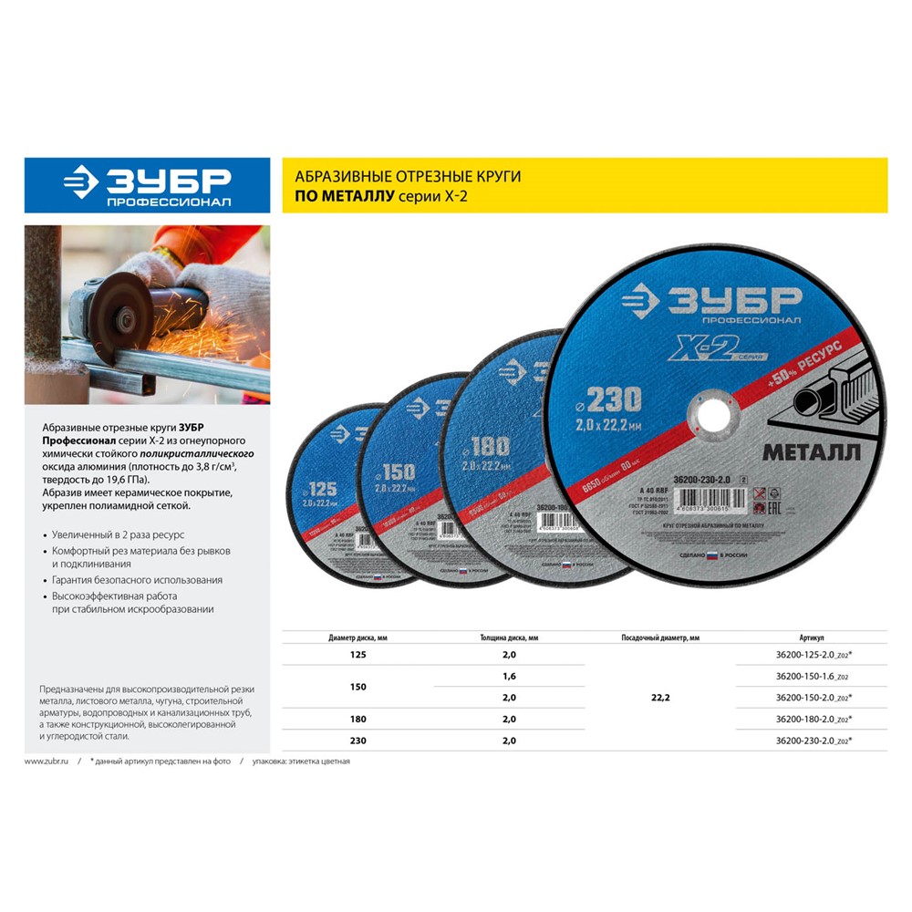 Круг отрезной по металлу ЗУБР 36200-125-2.0_z02, предназначены для высокопроизводительной резки металла, листового металла, чугуна, а также конструкционных, высоколегированных и углеродистых типов сталей. Изготовлены в РОССИИ на современном высокотехнологичном оборудовании по оригинальной технологии и рецептуре.