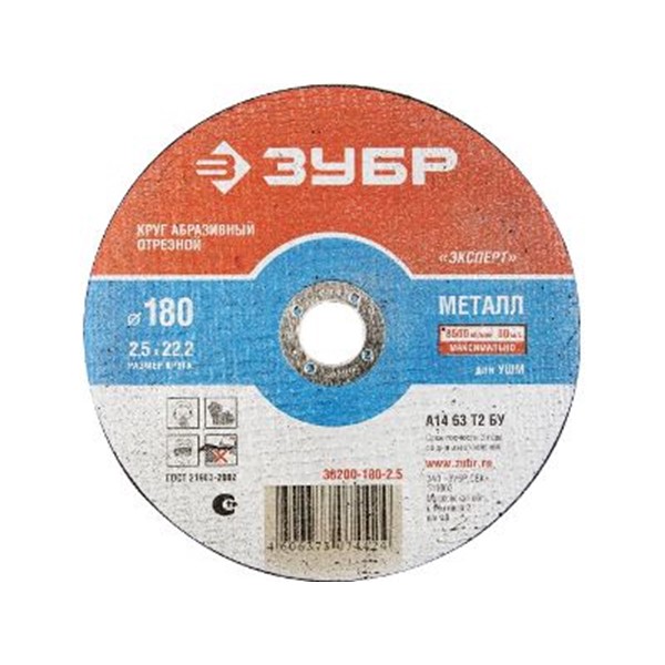 Описание и дополнительная информация о Круг отрезной абразивный ЗУБР по металлу, для УШМ, 180х2,5х22,2мм появится на сайте в скором времени