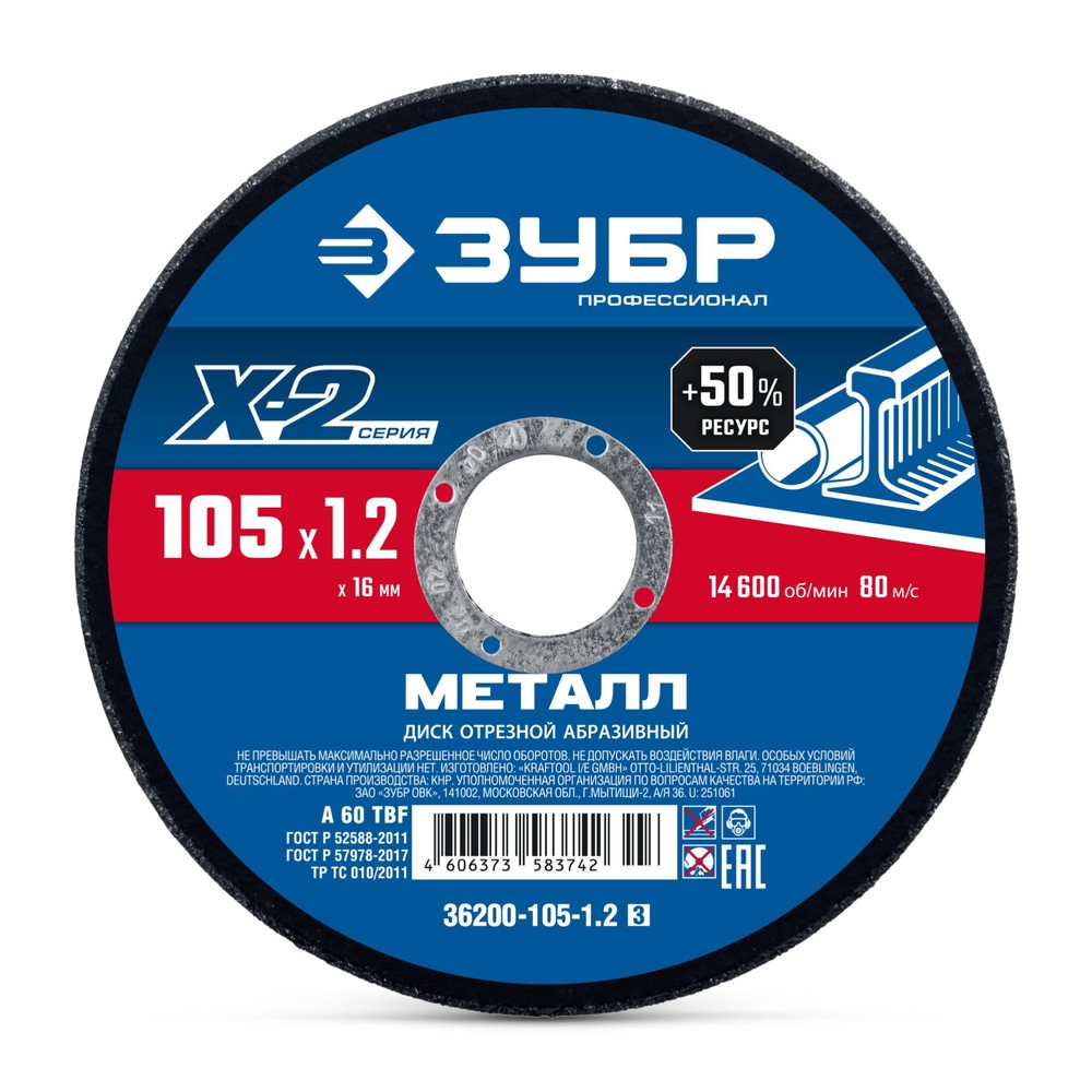 ЗУБР Х-2 105 х1.2 х 16 мм по металлу отрезной диск для УШМ Сотка, Профессионал (36200-105-1.2)