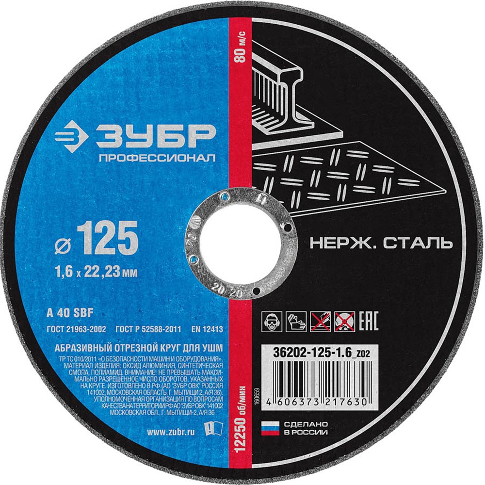 Круг отрезной по нержавеющей стали ЗУБР 36202-125-1.6_z02, применяется на УШМ при резке конструкций и заготовок из нержавеющей стали. Круг обладает высокой режущей способностью и имеет максимально возможный ресурс в своём классе. Изготавливается из компонентов и связующих материалов с высокой степенью очистки. Многослойное армирование бакелитовой связки полиамидными сетками обеспечивает прочность круга и безопасность в работе. Изготавливается на полностью автоматизированных роторных прессах с компьютерным контролем приготовления и смешивания абразивной смеси. Низкое содержание серы в круге позволяет использовать его даже в пищевой промышленности.