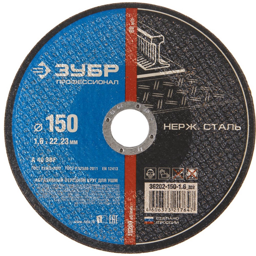 ЗУБР 150х1.6х22.23 мм, круг отрезной по нержавеющей стали для УШМ 36202-150-1.6_z02 Профессионал