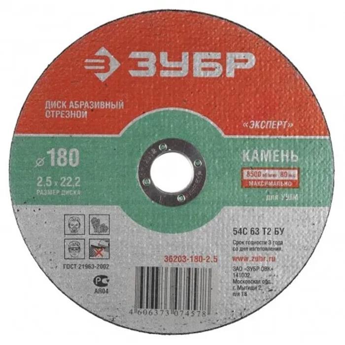 Круг отрезной абразивный ЗУБР по камню, для УШМ, 180х2,5х22,2мм