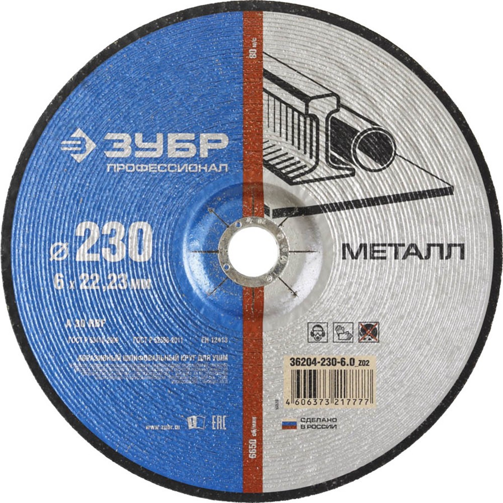 Круг шлифовальный по металлу, 230х6х22,23мм, ЗУБР