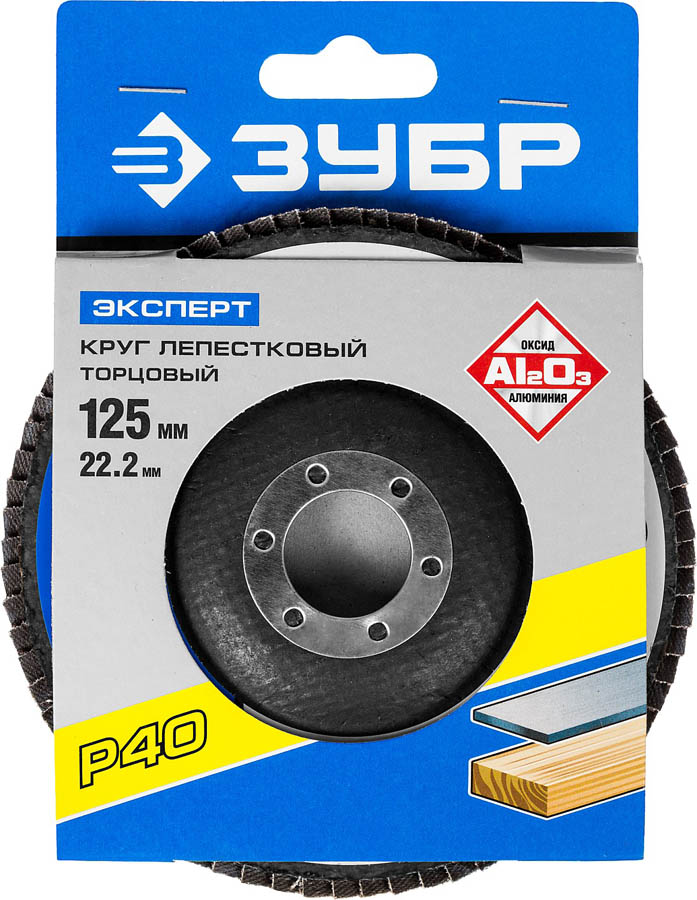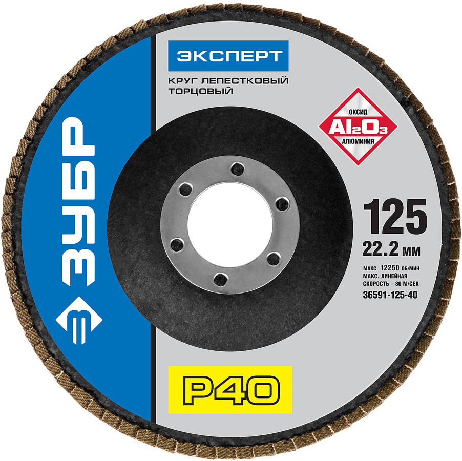 Круг лепестковый торцевой, 125х22,2мм, тип КЛТ 1, ЗУБР P40 (36591-125-40, )