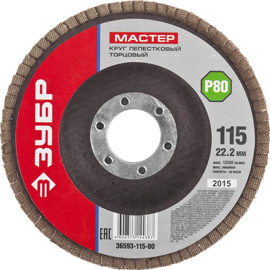 Круг лепестковый торцевой, 115х22,2мм, тип КЛТ 1, ЗУБР P80 (36593-115-80, )