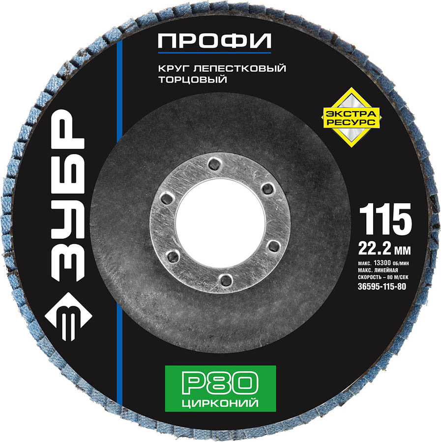 Круг лепестковый торцевой циркониевый, 115х22,2мм, тип КЛТ 1, ЗУБР P80