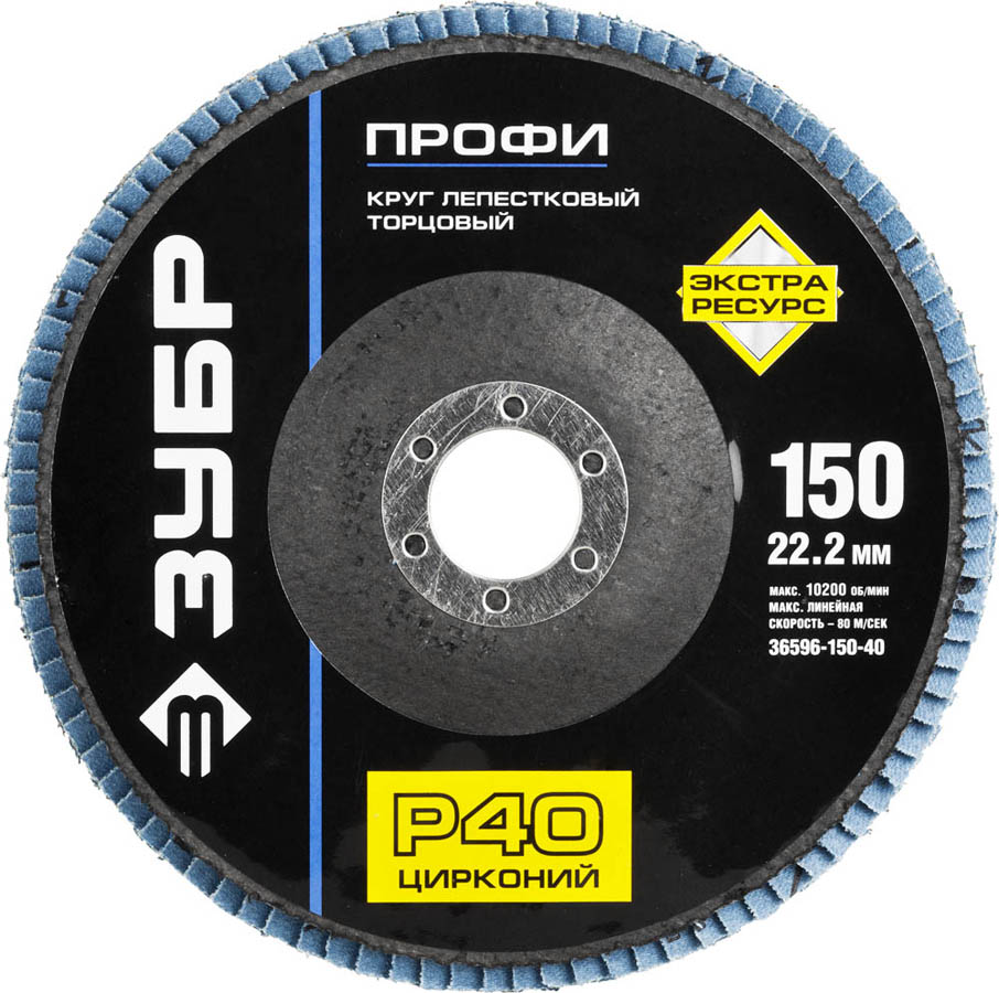 Круг лепестковый торцевой циркониевый, 150х22,2мм, тип КЛТ 1, ЗУБР P40