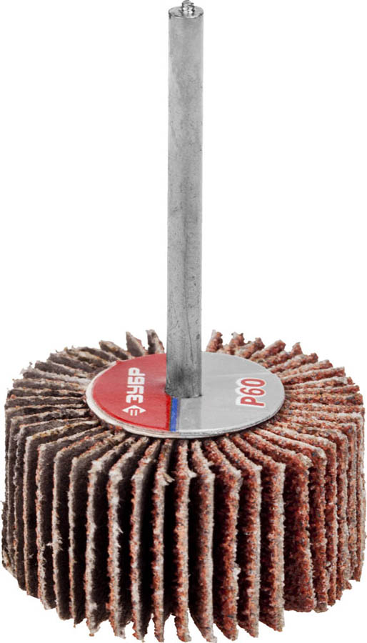Круг шлифовальный ЗУБР "МАСТЕР" веерный лепестковый, на шпильке, тип КЛО, зерно-электрокорунд нормальный, P60, 15х30мм