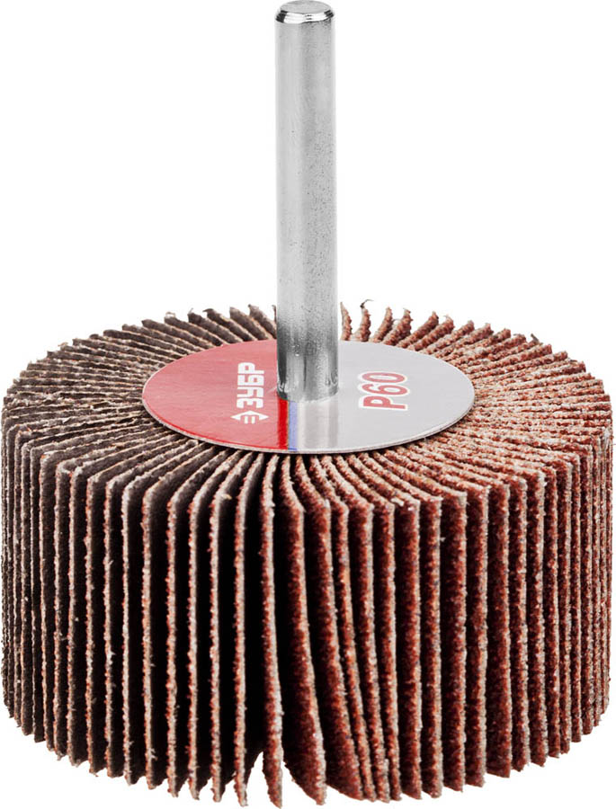 Круг шлифовальный ЗУБР "МАСТЕР" веерный лепестковый, на шпильке, тип КЛО, зерно-электрокорунд нормальный, P60, 30х60мм