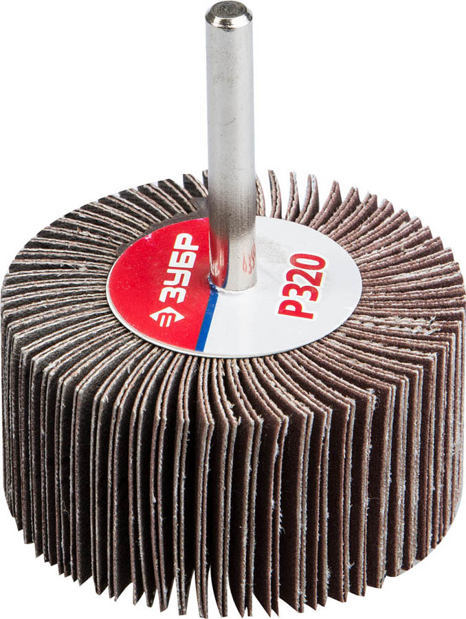 Круг шлифовальный ЗУБР "МАСТЕР" веерный лепестковый, на шпильке, тип КЛО, зерно-электрокорунд нормальный, P320, 30х60мм