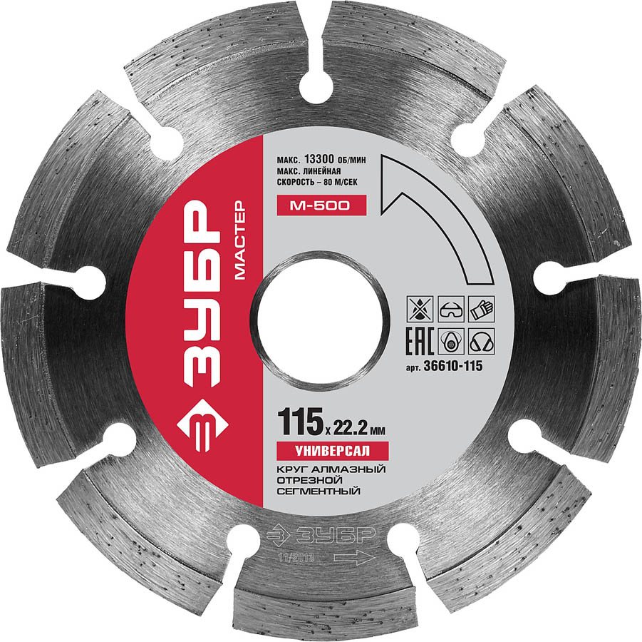 ЗУБР Ø 115х22.2 мм, алмазный, сегментный, круг отрезной для УШМ 36610-115