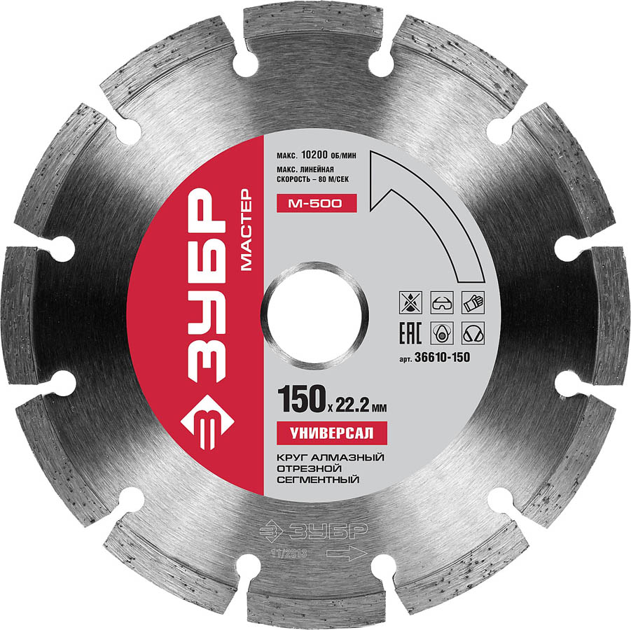 ЗУБР Ø 22.2х150мм, алмазный, сегментный, круг отрезной для УШМ 36610-150