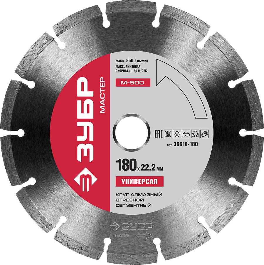 М-500 УНИВЕРСАЛ 180 мм, диск алмазный отрезной сегментный по бетону, кирпичу, камню, ЗУБР