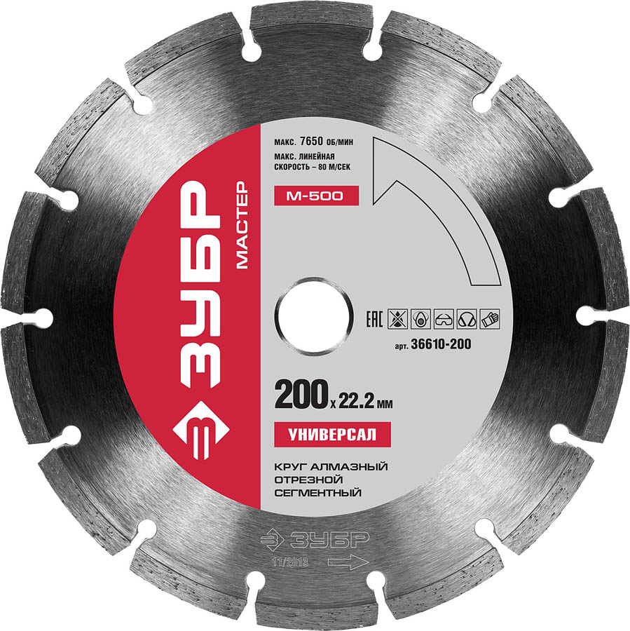 М-500 УНИВЕРСАЛ 200 мм, диск алмазный отрезной сегментный по бетону, кирпичу, камню, ЗУБР