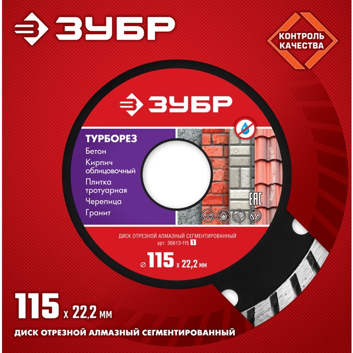 Исключительно высокий уровень качества отрезных алмазных дисков ЗУБР гарантирован комплексной системой контроля всего процесса производства: от качества поступающего сырья до готовой продукции. Корпуса алмазных дисков изготовлены из прочной легированной стали, способной выдержать значительную механическую нагрузку и высокую температуру.