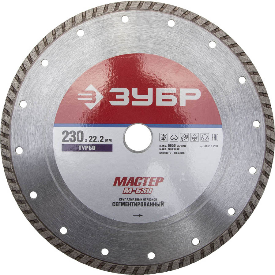 М-530 ТУРБО 230 мм, диск алмазный отрезной сегментированный по бетону, кирпичу, камню, ЗУБР