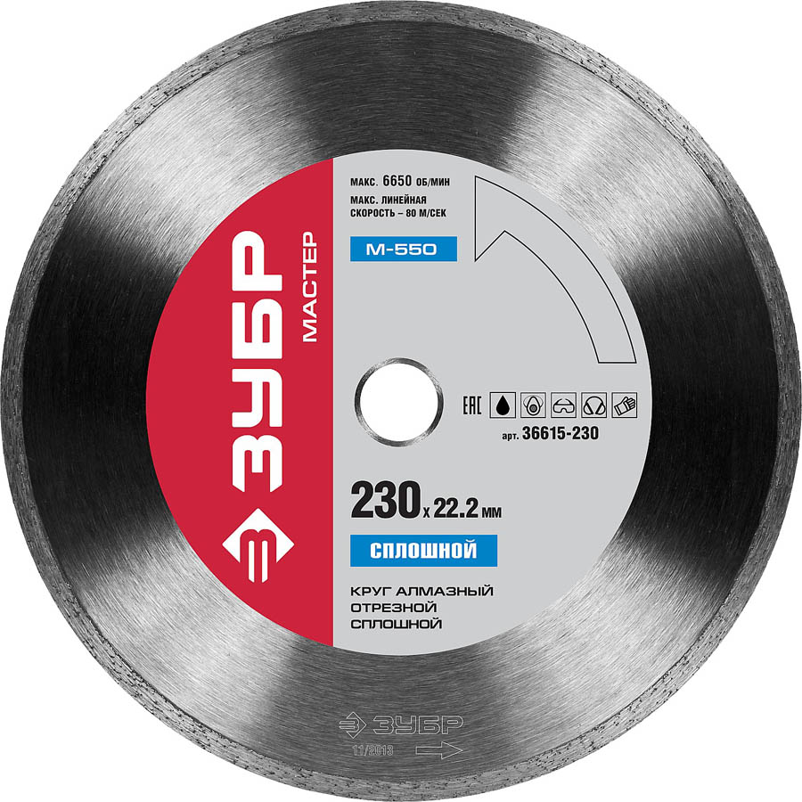 М-550 СПЛОШНОЙ 230 мм, диск алмазный отрезной сплошной по керамограниту, мрамору, плитке, ЗУБР
