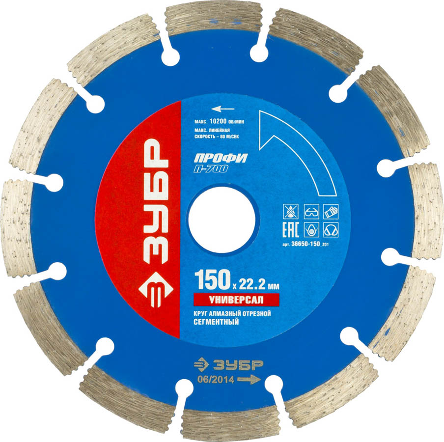 Т-700 УНИВЕРСАЛ 150 мм, диск алмазный отрезной по бетону, кирпичу, граниту, ЗУБР Профессионал