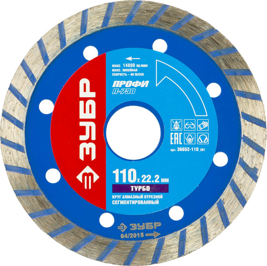 Т-730 ТУРБО 110 мм, диск алмазный отрезной по бетону, кирпичу, граниту, ЗУБР Профессионал