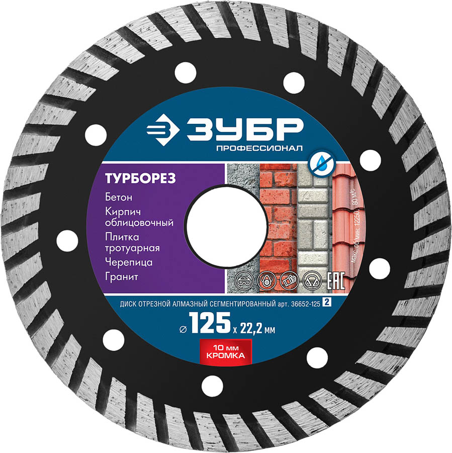 ТУРБОРЕЗ 125 мм, диск алмазный отрезной сегментированный по бетону, кирпичу, граниту, ЗУБР Профессионал