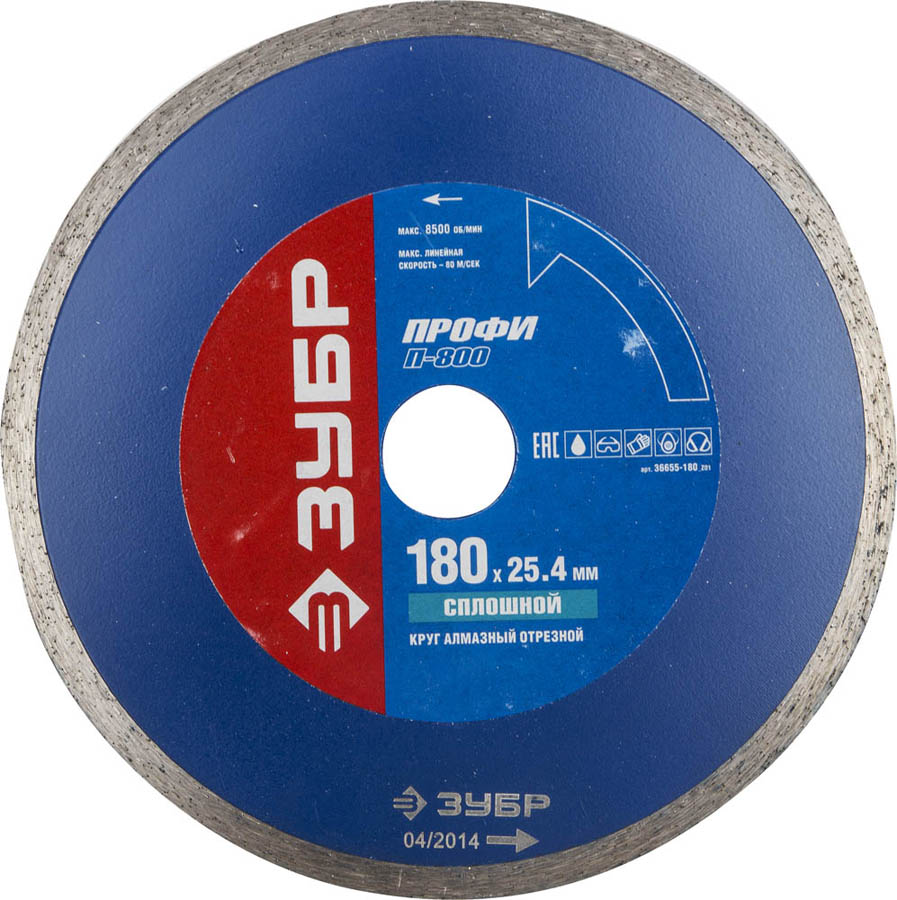Т-800 Сплошной 180 мм, диск алмазный отрезной сплошной по керамограниту, мрамору, плитке, ЗУБР Профессионал