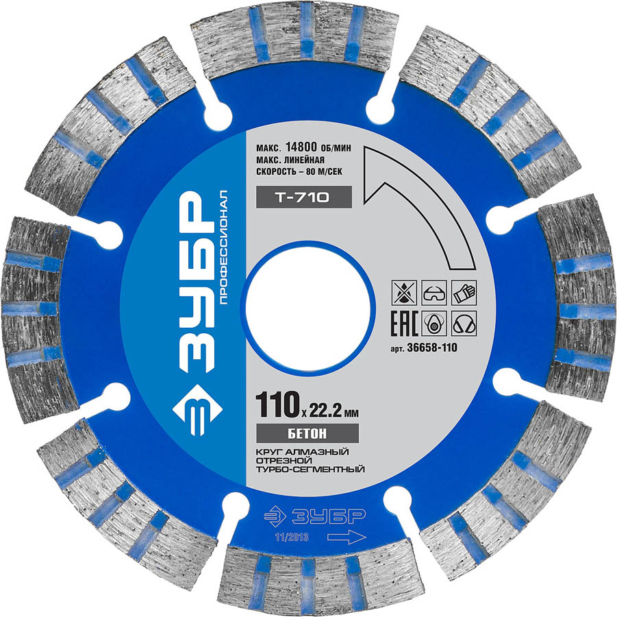Т-710 БЕТОН 110 мм, диск алмазный отрезной по высокопрочному бетону, ЗУБР Профессионал