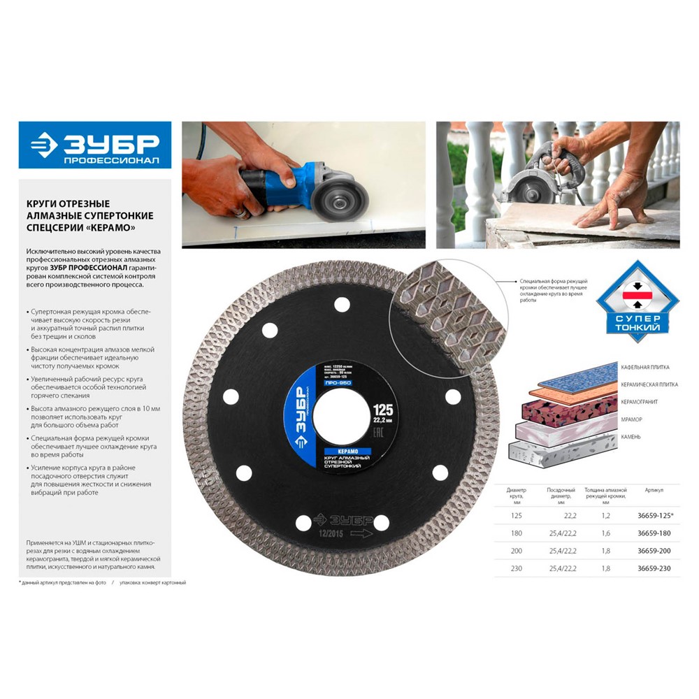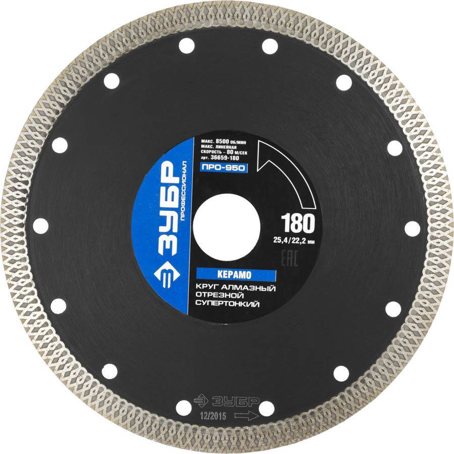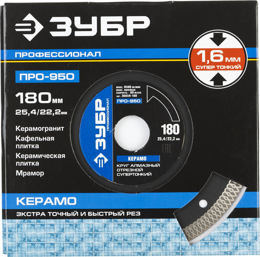 ПРО-950 КЕРАМО 180 мм, диск алмазный отрезной сплошной ультратонкий, ЗУБР Профессионал