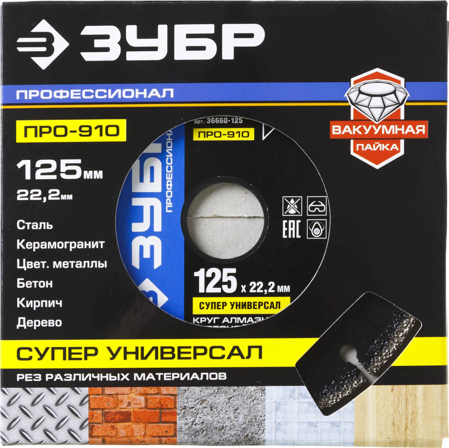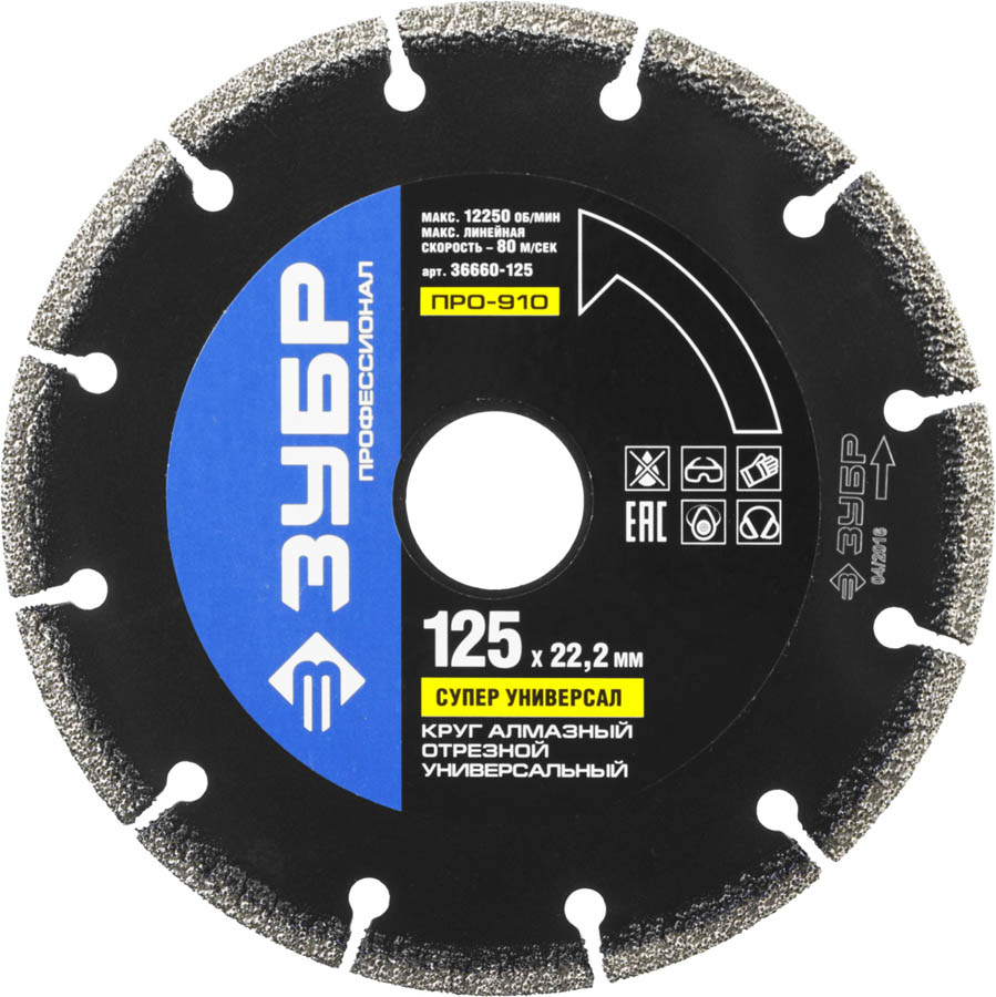 ЗУБР Ø 125х22.2 мм, алмазный, сегментированный, круг отрезной для УШМ 36660-125