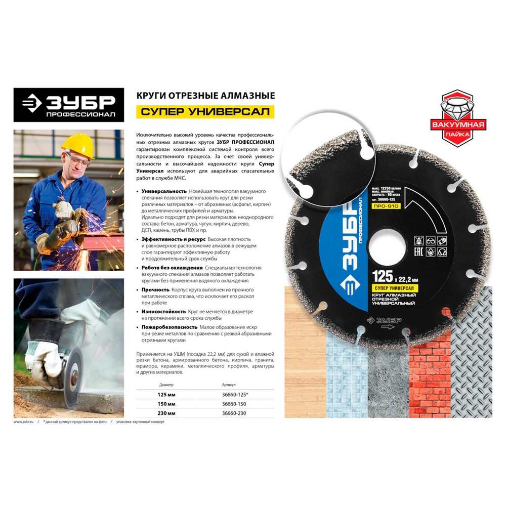 ПРО-910 СУПЕР универсал 150 мм, диск алмазный отрезной универсальный, ЗУБР Профессионал