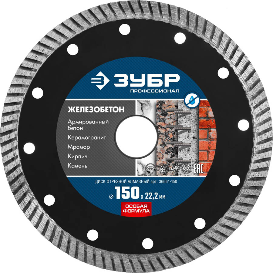 ЖЕЛЕЗОБЕТОН 150 мм, диск алмазный отрезной сегментированный по железобетону, армированному бетону, ЗУБР Профессионал