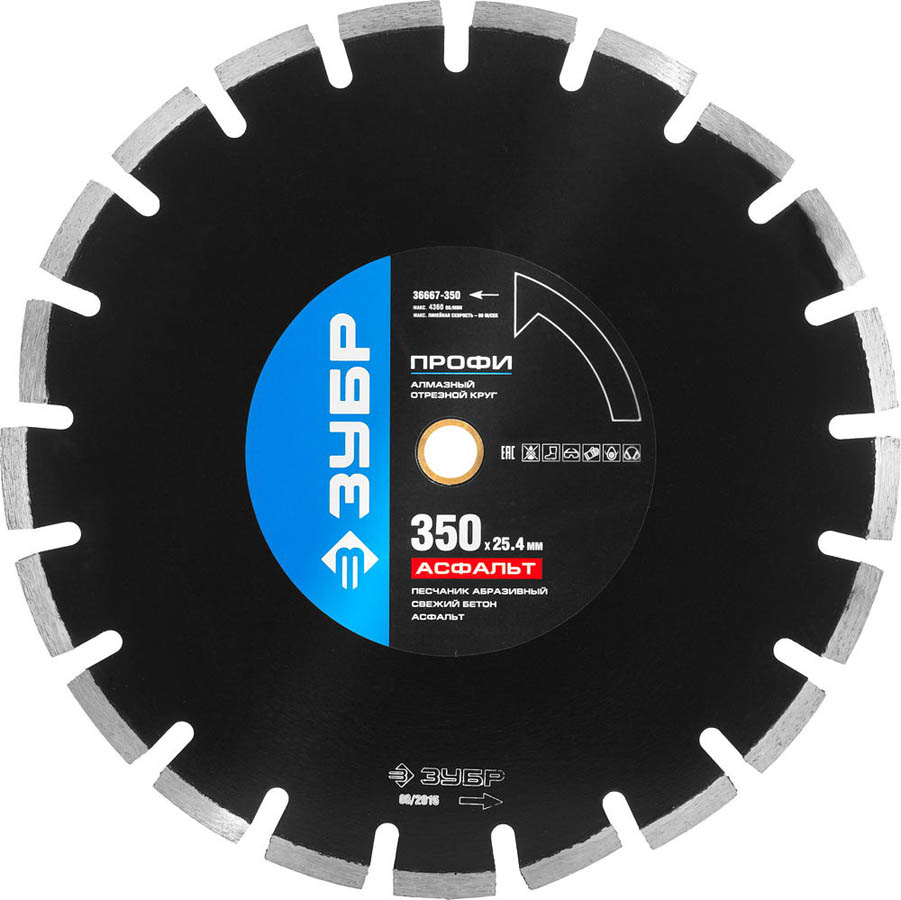 АСФАЛЬТ 350 мм, диск алмазный отрезной по асфальту, ЗУБР Профессионал