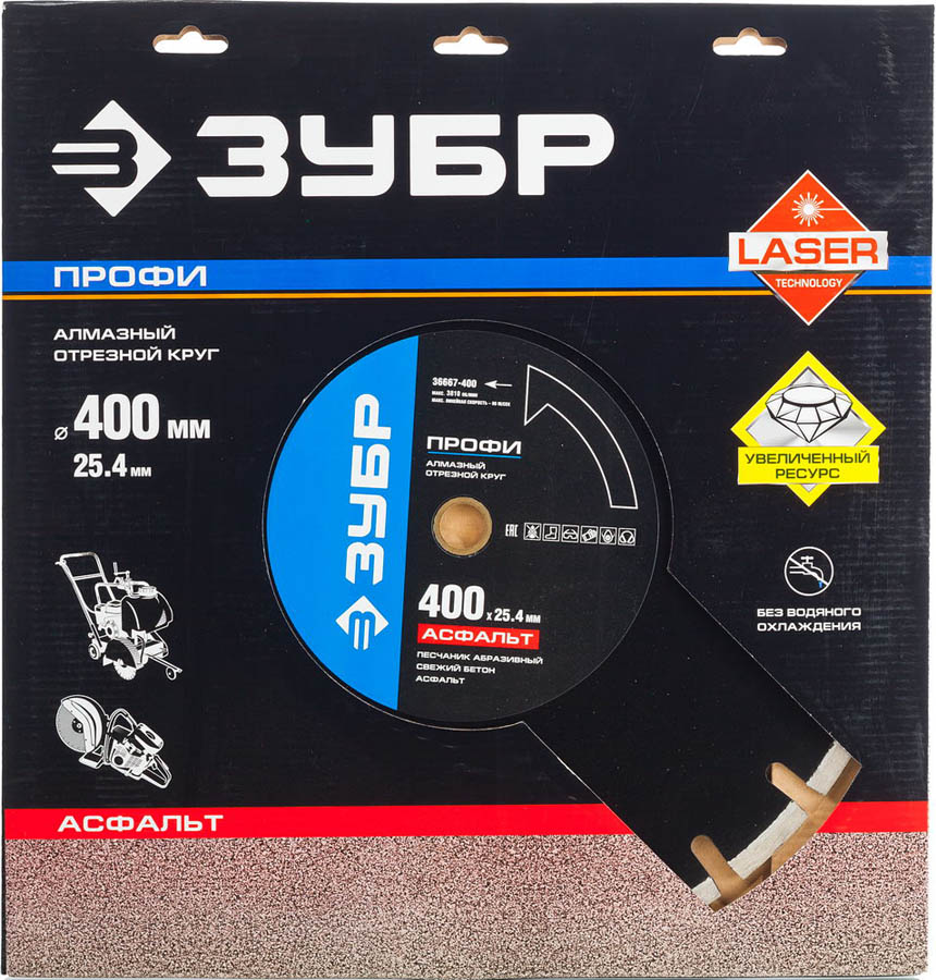 АСФАЛЬТ 400 мм, диск алмазный отрезной по асфальту, ЗУБР Профессионал