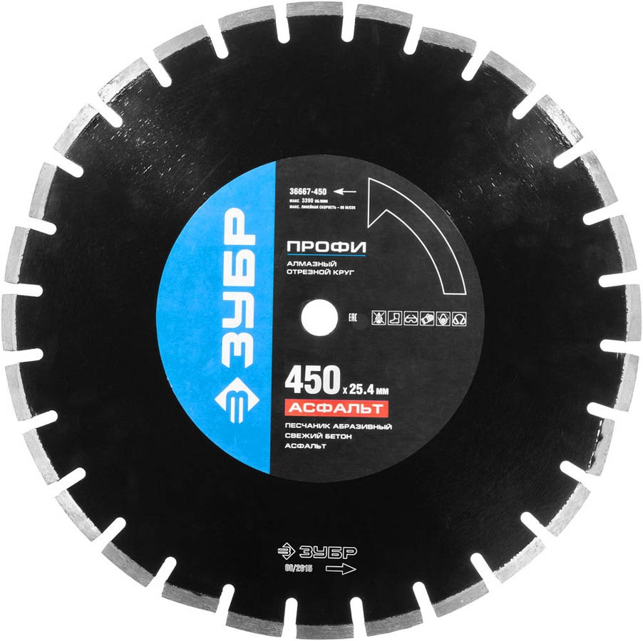 АСФАЛЬТ 450 мм, диск алмазный отрезной по асфальту, ЗУБР Профессионал