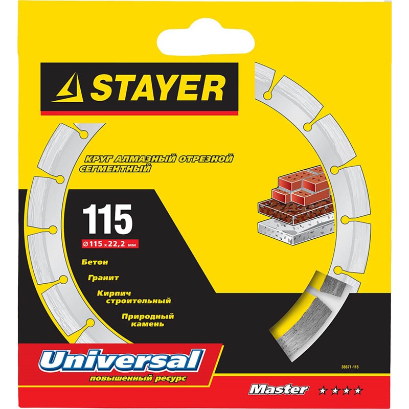 UNIVERSAL 115 мм, диск алмазный отрезной сегментный по бетону, кирпичу, камню, STAYER