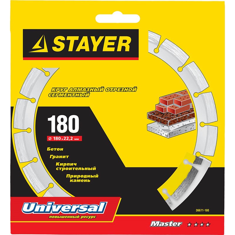 UNIVERSAL 180 мм, диск алмазный отрезной сегментный по бетону, кирпичу, камню, STAYER