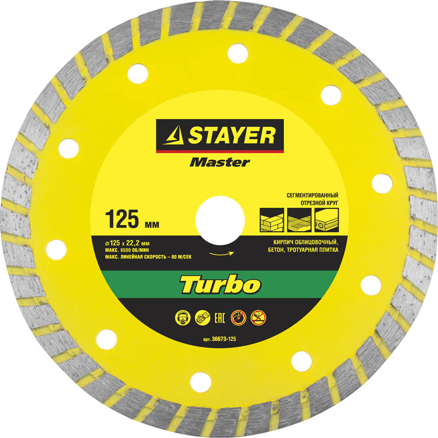 TURBO 125 мм, диск алмазный отрезной сегментированный по бетону, кирпичу, камню, STAYER
