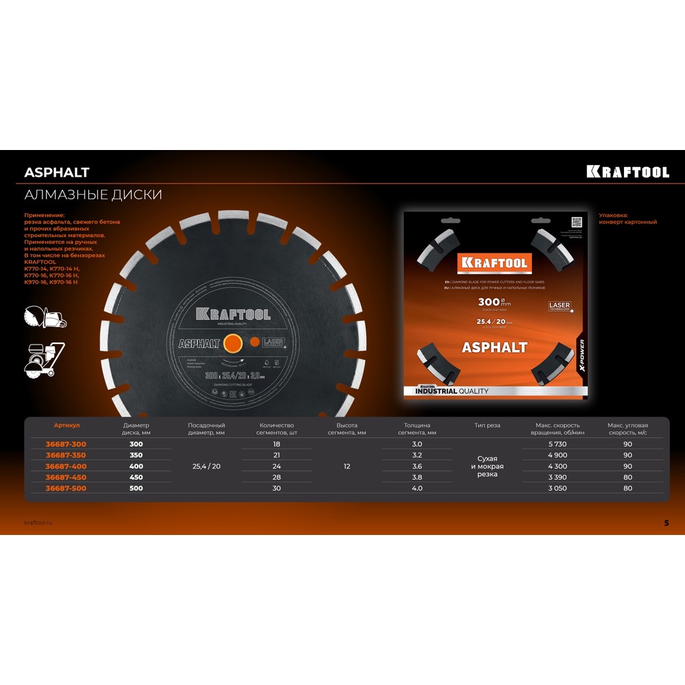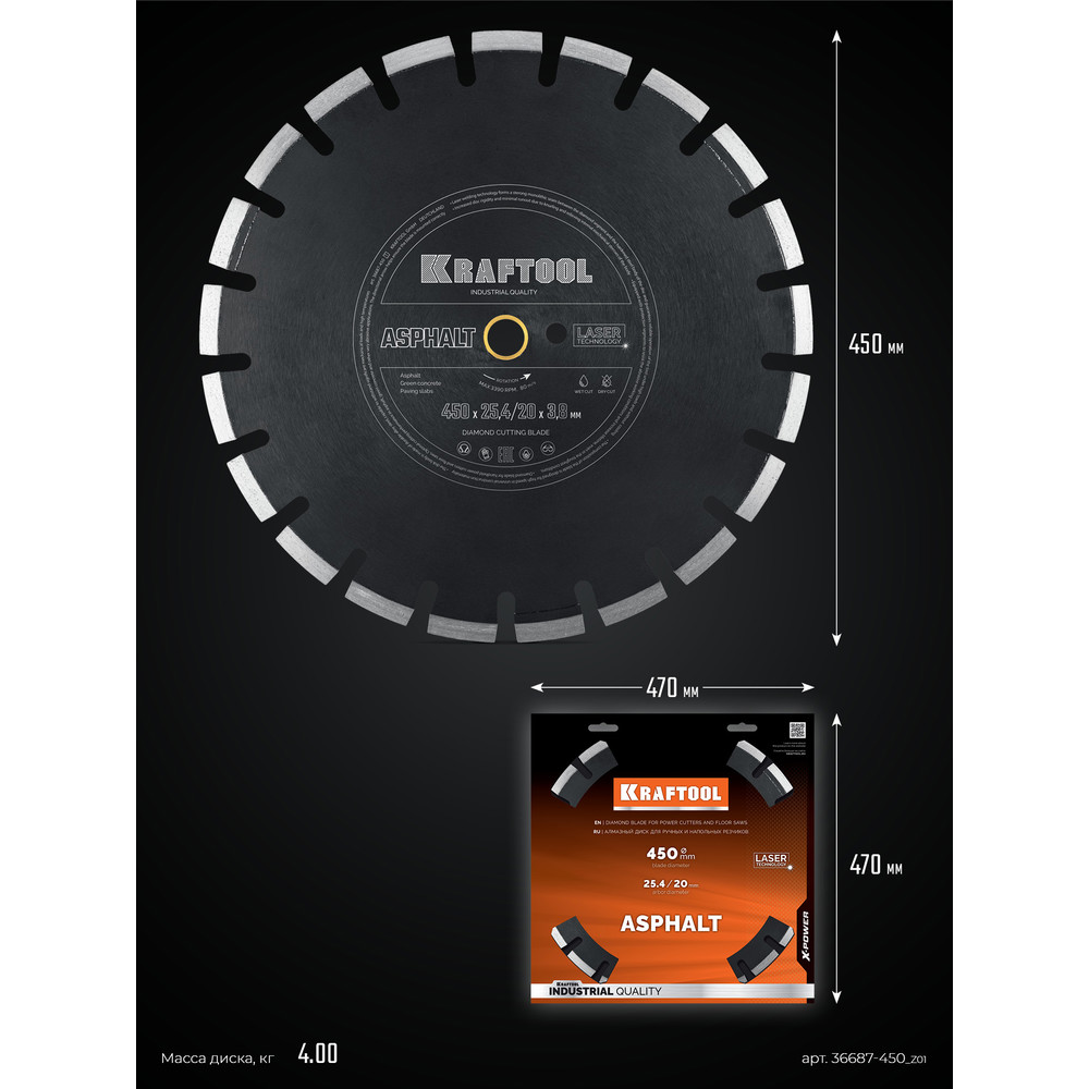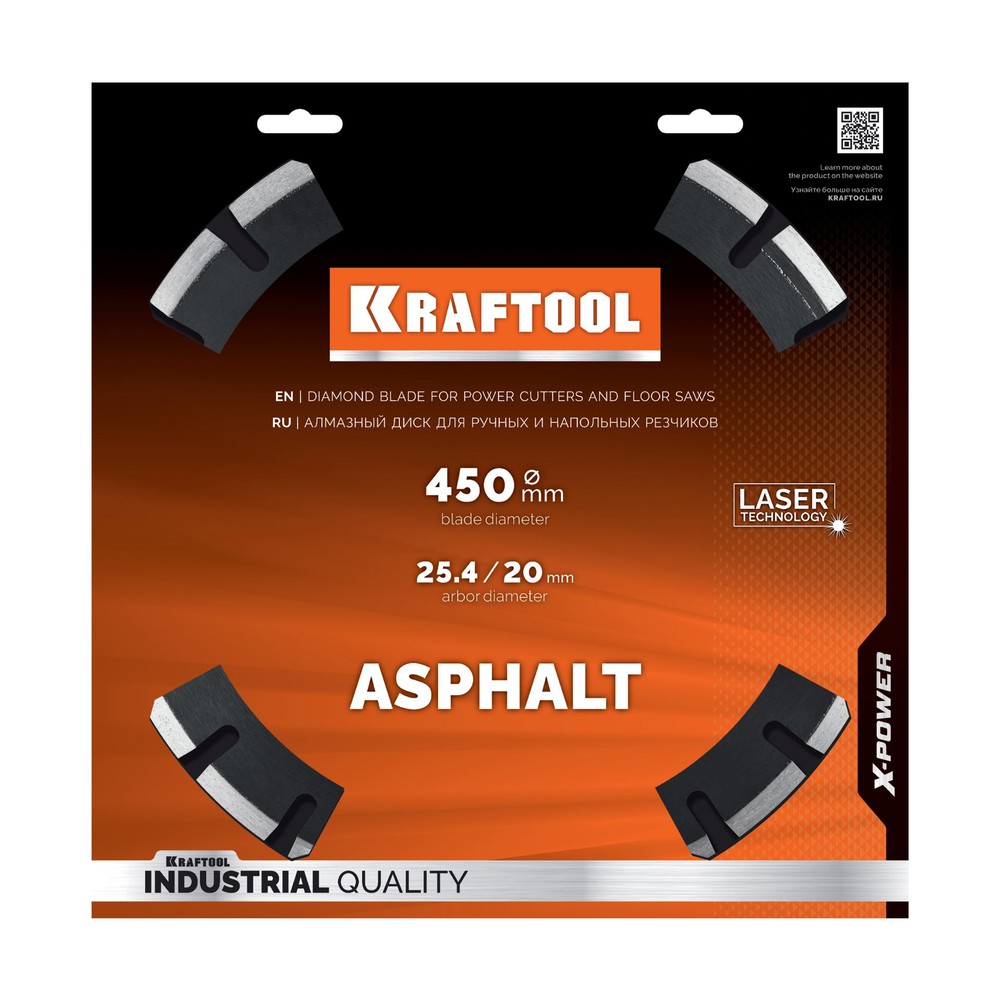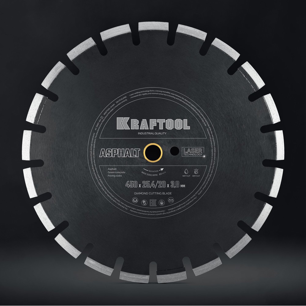 KRAFTOOL ASPHALT 450 мм (25.4/20 мм, 12х3.8 мм), алмазный диск (36687-450)