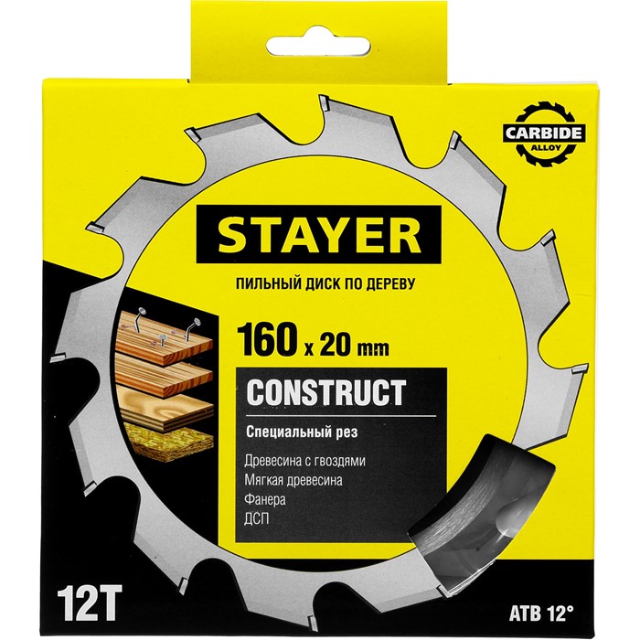 Пильные диски для строительной древесины с гвоздями ″CONSTRUCT″ 3683-165-20-12_z01 Stayer