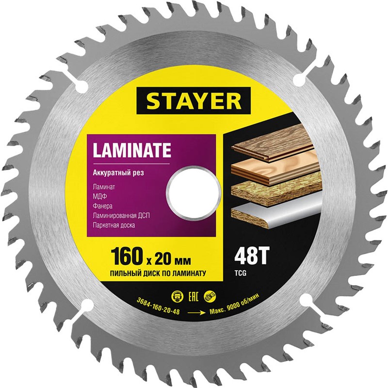 STAYER Laminate 160 x 20 мм 48T, диск пильный по ламинату