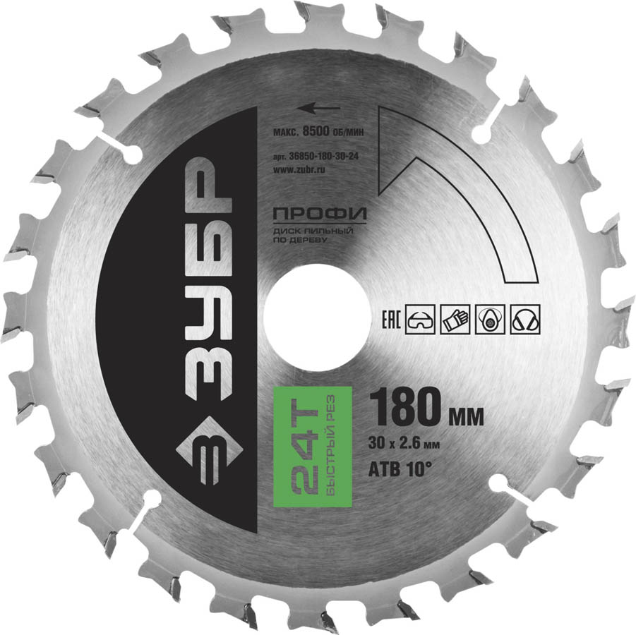 ЗУБР Быстрый рез 180 х 30 мм 24Т, диск пильный по дереву
