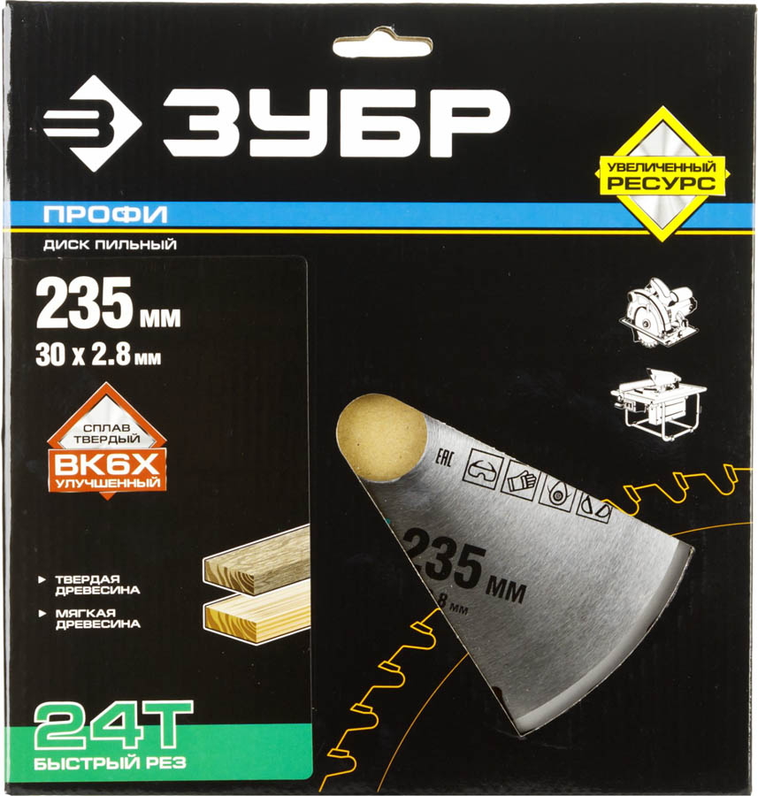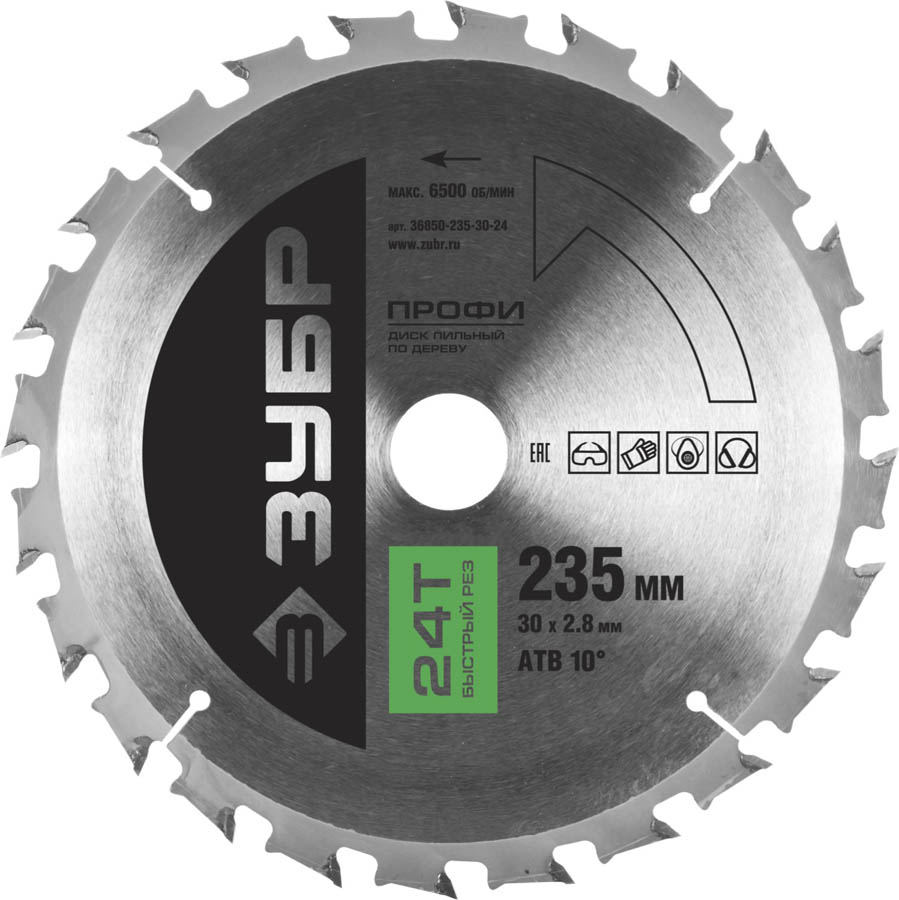 ЗУБР Быстрый рез 235 х 30 мм 24Т, диск пильный по дереву
