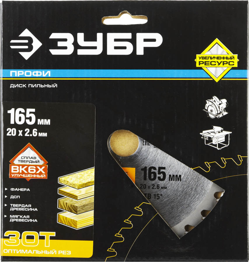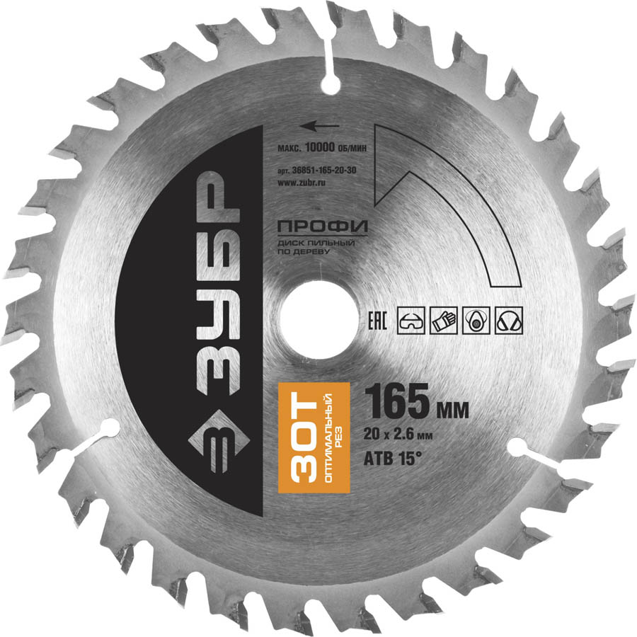ЗУБР Оптимальный рез 165 х 20 мм 30Т, диск пильный по дереву