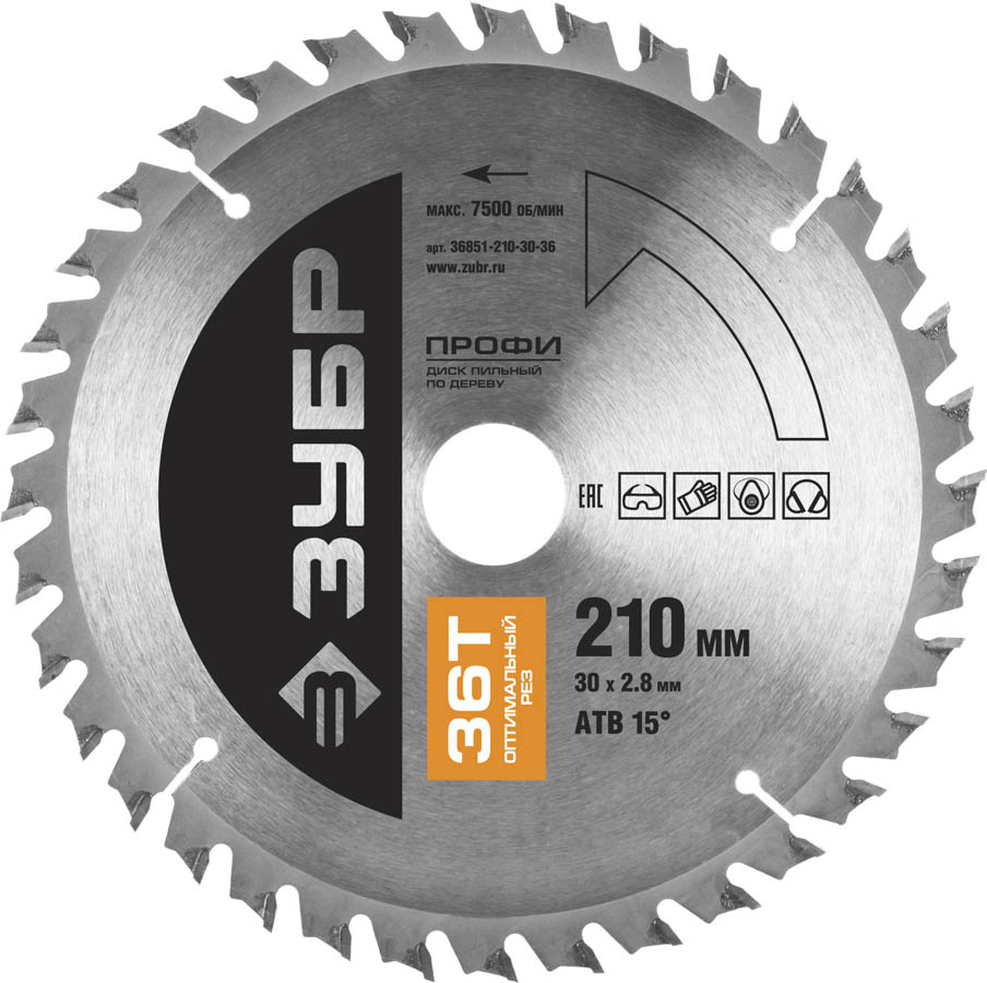 ЗУБР Ø 210 x 30 мм, 36T, диск пильный по дереву 36851-210-30-36 Профессионал