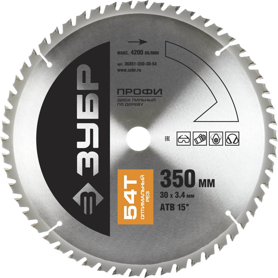 ЗУБР Ø 350 x 30 мм, 54T, диск пильный по дереву 36851-350-30-54 Профессионал