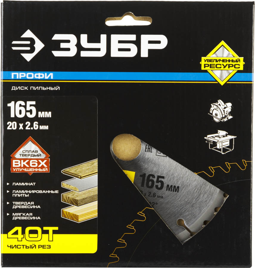 ЗУБР Чистый рез 165 х 20 мм 40Т, диск пильный по дереву