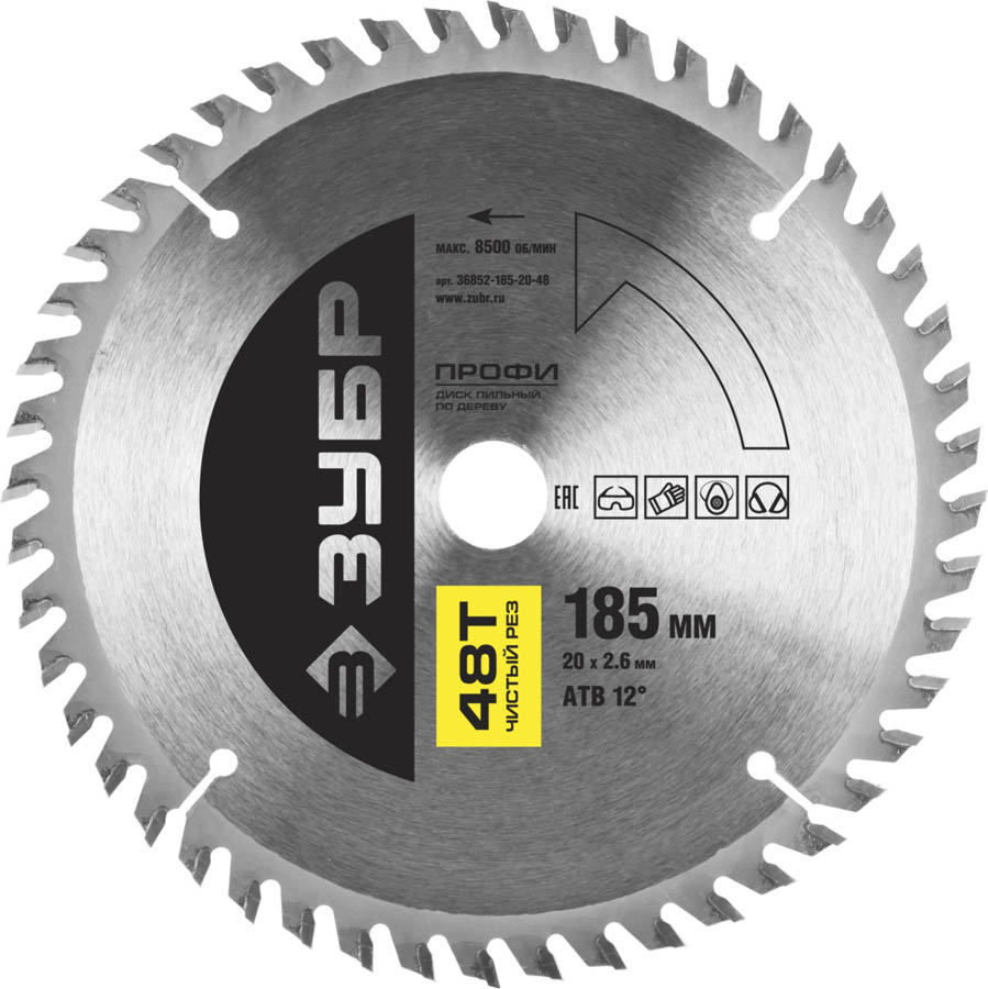 ЗУБР Чистый рез 185 х 20 мм 48Т, диск пильный по дереву