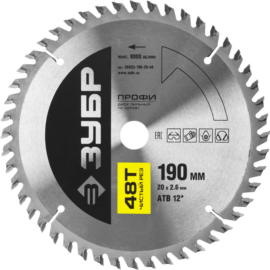 ЗУБР Ø 190 x 20 мм, 48T, диск пильный по дереву 36852-190-20-48 Профессионал